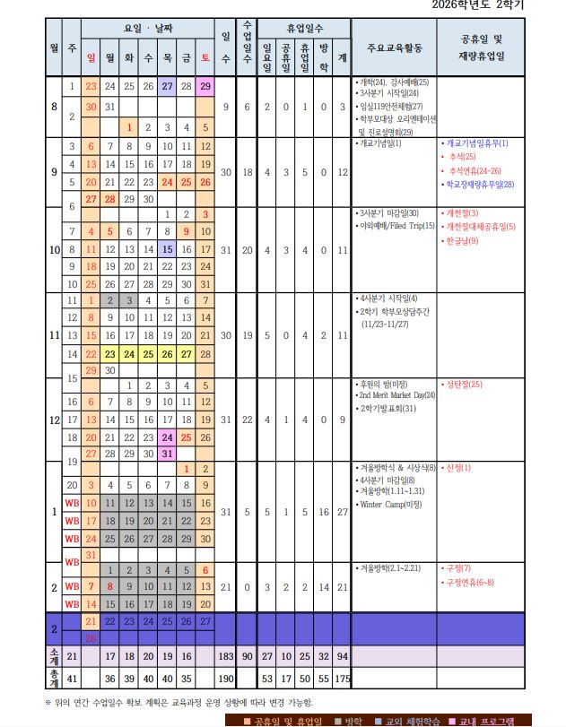 학사 일정은 기상 이변 및 상황에 따라서 변경하여 운영될 수 있습니다.